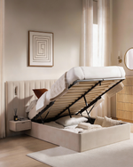 Make your bedroom feel like a boutique hotel with this Luxe Integrated Ottoman Storage Bed. Wrapped in a soft-touch upholstered finish and completed with a clean vertical channel headboard, this design instantly elevates your space while keeping everything practical.