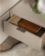 Two built-in drawers keep your phone, books, remotes, and essentials organised.