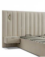 USB charging port built into the headboard area (convenient bedside charging)